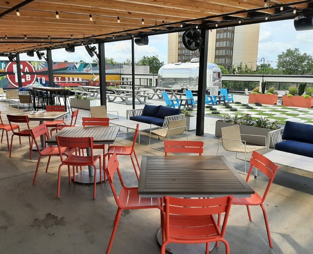 The outdoor patio is a huge draw—perfect for enjoying brisket and bourbon cocktails (though we’re not talking drinks) while soaking in that downtown energy.