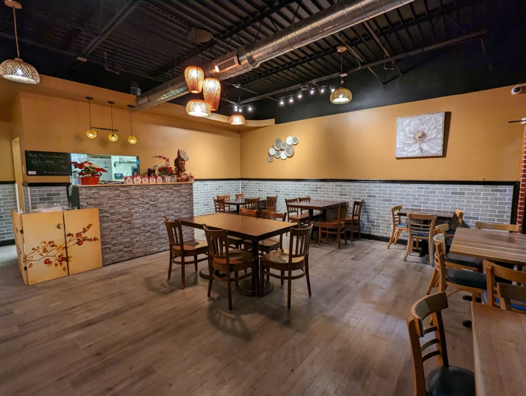The cozy dining area invites you to settle in, enjoy some fresh Thai basil chicken, and talk about everything that’s happened since lunch.