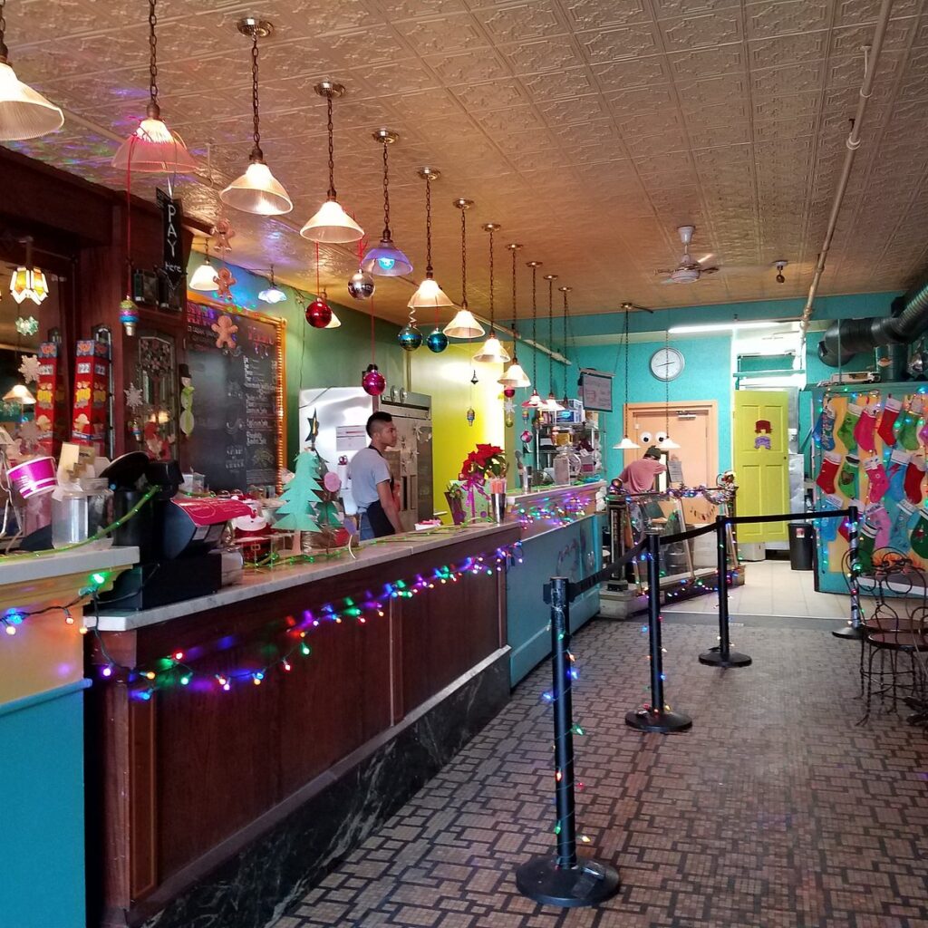 It’s a nostalgic step back in time, with a vintage vibe, a checkered floor, and a menu board that’s packed with inventive and delicious homemade ice cream flavors.