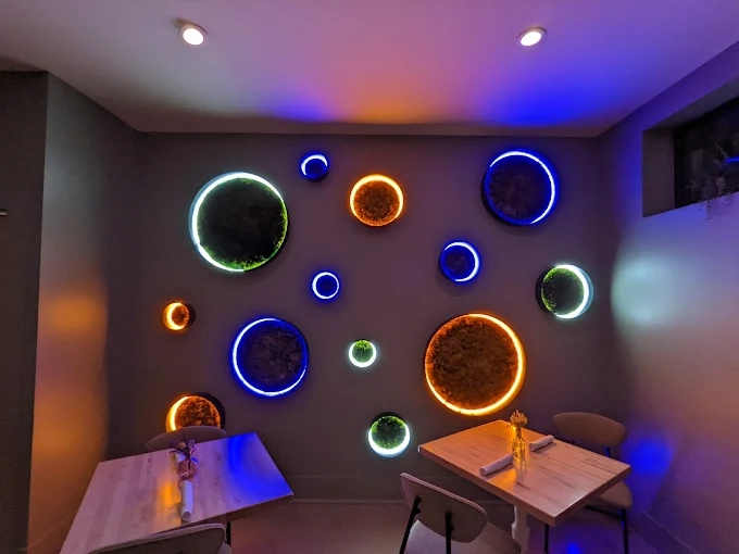 The interior feels playful and laid back, with colorful decor and a fun atmosphere.