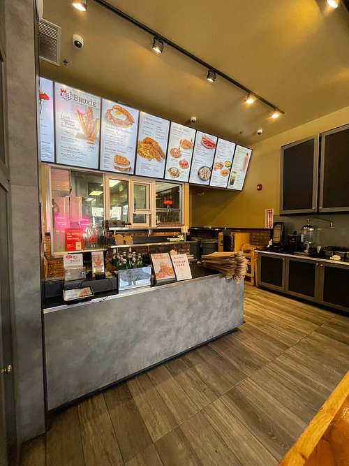 The buttermilk fried chicken and waffle sandwich is the star—crispy chicken between two fluffy waffles with honey mustard. The prosciutto and fig is another winner, sweet and savory. For vegetarians, there are caprese waffle sandwiches.