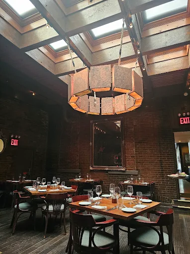 The dining room feels stylish yet relaxed. Friendly service and warm lighting create an inviting atmosphere.