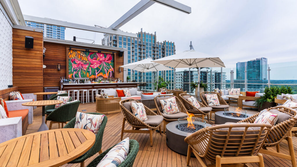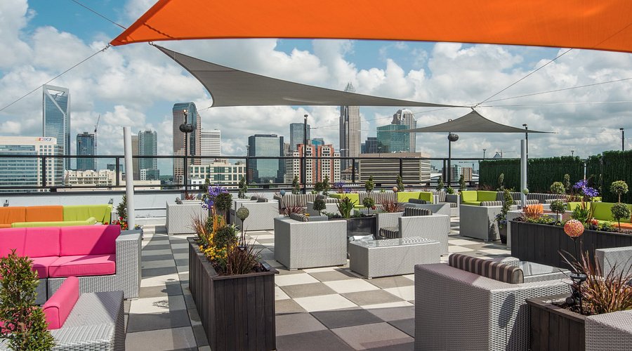 The Kimpton Tryon Park Hotel is the spot for rooftop lovers. This hotel sits right next to the Romare Bearden Park, offering stunning views of the green space. The vibe is modern, artsy, and energetic.