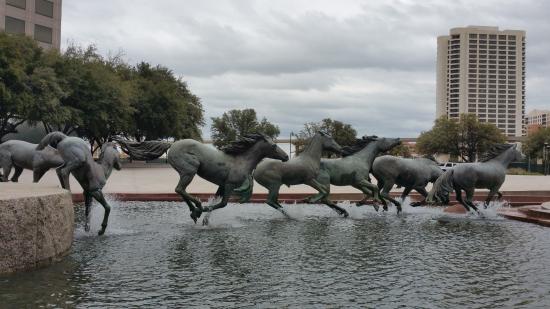 Your first stop has to be the Mustangs of Las Colinas. This isn’t just a sculpture; it’s a Texas icon. Picture nine larger-than-life bronze mustangs running through a granite stream.