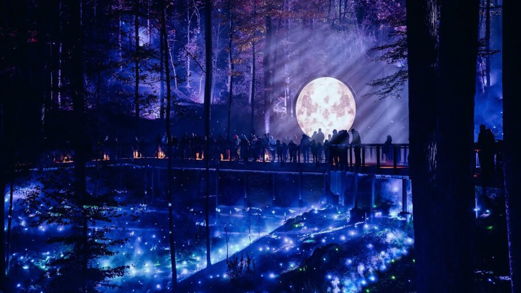 Imagine walking paths washed in color, encountering radiant landscapes and wildlife-inspired displays, all set to an original musical score.