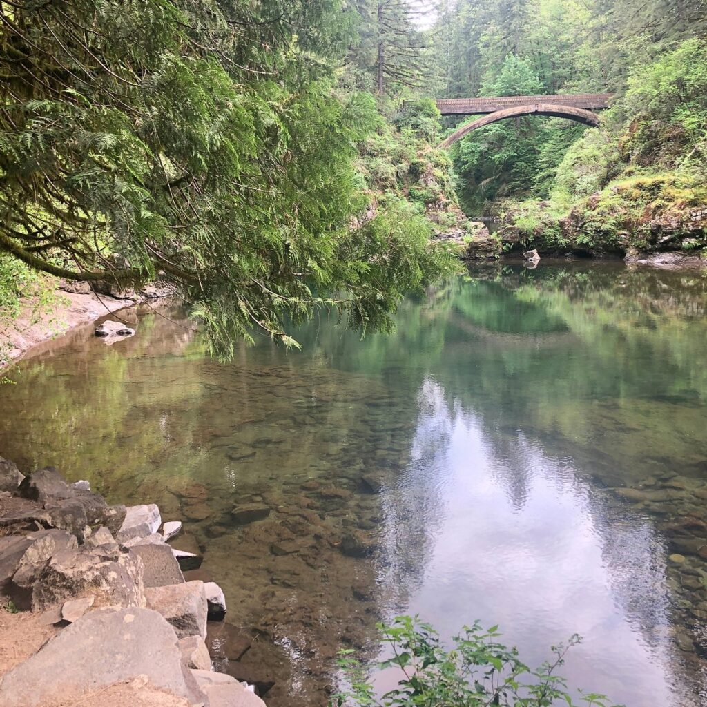For a family-friendly option, try the Sams Walker Loop. It’s a quick and easy trail that offers sneak peeks of Horsetail Falls and gets you away from highway noise.