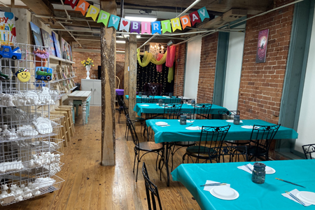 This isn’t your average paint-and-sip spot; it’s a massive 4,800-square-foot studio packed with possibilities. You can try your hand at pottery painting, dive into the wild fun of a splatter paint room, or explore other craft projects.