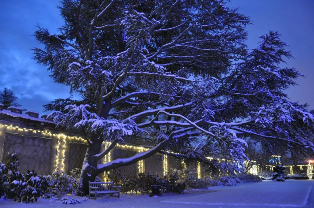 This isn’t your average string of bulbs; it’s the spectacular Grand Holiday Illumination, and it’s absolutely free to enjoy. You’ll walk winding paths lined with thousands of twinkling lights, making the famous Walled Garden and its intricate Persian-style design shine like a jewel.