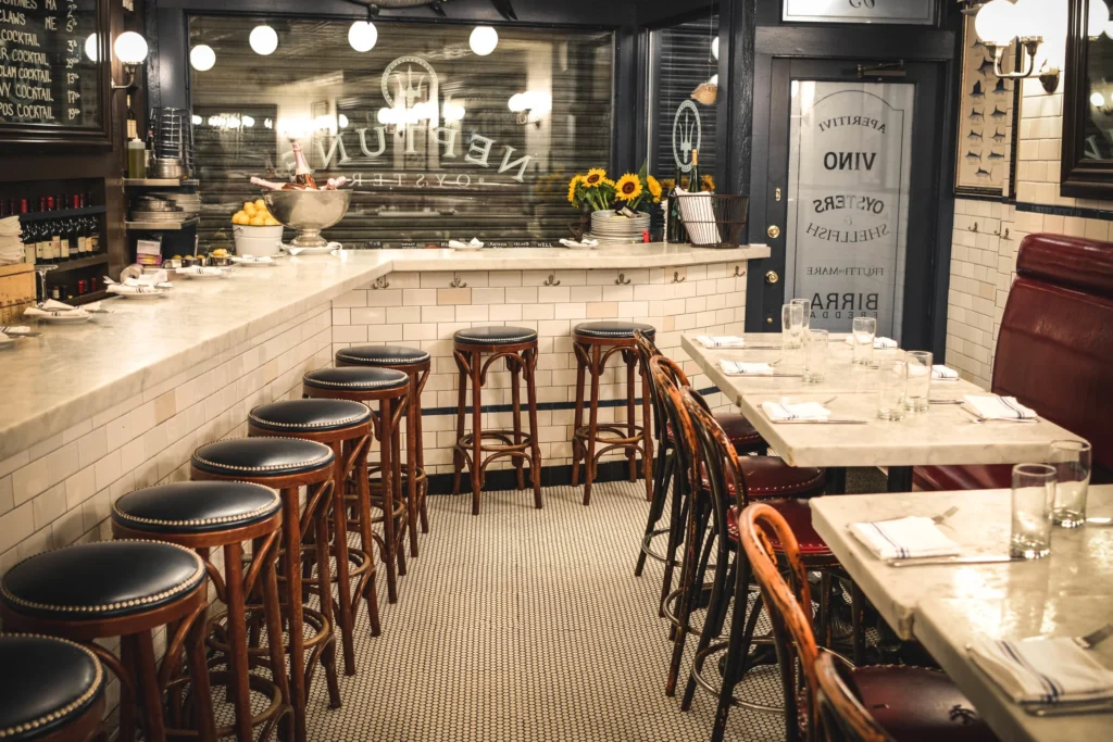 There’s almost always a line out the door, and for good reason. The marble bar is the place to be, where you can watch shuckers work their magic on an incredible, rotating selection of East Coast oysters.